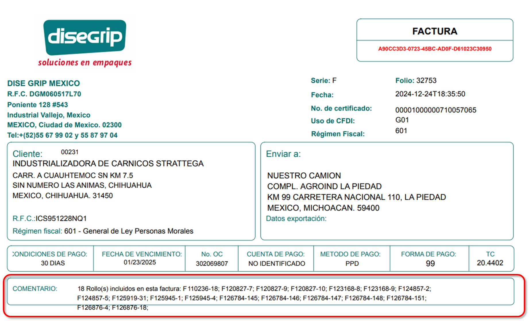 SOP10201 - Esta tabla tiene los comentarios de las partidas de una factura